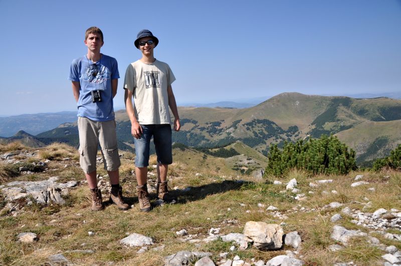 Vylezli jsme na nepojmenovaný vrchol (2079 m. n. m.), počkali až čtveřice mladých kluků – borůvkářů – přejdou do bezpečné vzdálenosti a kousek pod vrcholem jsme schovali krosny. Výstup na sousední Crnu Glavu (2139 m. n. m.) jsme si dali jenom na lehko. Tam se mi bohužel stala nemilá věc, po focení ze stativu (ve formě kovové schránky určené pro vrcholovou knihu), se mi páska foťáku zachytila za okraj schránky, foťák z ruky vyškubnul a asi z půl metru spadnul do kamení :(. Žádné sklo se nerozbilo, ale začala blbnout funkce potvrzování automatického ostření. Ach jo, chvilka nepozornosti a neštěstí je na světě.