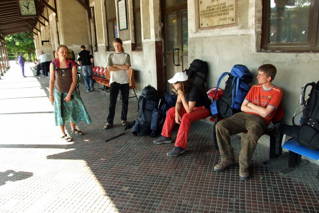 Na nádraží jsme čekali asi dvacet minut před příjezdem vlaku. Všechno nasvědčovalo, že to bude už velmi pohodlná cesta domů, jelikož vlak, co měl přijet, jel až do Prahy. Tedy respektive vagón, kterým jsme měli jet. Pak to ale přišlo. Vlak skutečně a na čas přijel, ale měl jenom dva vagóny a my jsme ten svůj nemohli najít. Nastoupili jsme tedy do jednoho z nich a pánovi v trenkách bez trička, který se ukázal být „správcem vagónu“, jsme ukázali naše lístky. Začal na nás mluvit Rumunsky a záporně kroutit hlavou. Vykázal nás z vlaku a poslal za místním výpravčím. Zmateně jsme tedy zase vystoupili a šli zpátky. Z okénka vlaku se vyklonil nějaký cestující (Čech) a oznámil nám, že vagón, do kterého jsme teď měli nastoupit, měl asi osmihodinové zpoždění v Burgasu. Tento navazující spoj, ke kterému se měl náš vagón připojit, na něj pochopitelně nečekal. Šli jsme tedy za místním výpravčím. Zarputile vypadající pán si od nás vzal lístky, prohlížel si je a bavil se přitom s nějakým dalším chlápkem. Potom vstal a řekl ať jdeme s ním. Přišel k vagónu, do kterého jsme pve vlezli, zabouchal na dveře a zavolal na správce vagónu, ten vykouknul z okénka a začal se s výpravčím dohadovat, chvílemi docela dost ostře. Pochopili jsme, že výpravčího vůbec nezajímá, že náš vagón nepřijel, my jsme měli lístky, tak ať nás koukají vzít s sebou. Nakonec nám tuto možnost vybojoval a my jsme do vlaku s díky směrem k výpravčímu nastoupili. Správce byl sice ještě chvíli rozladěný, ale pak nás dokonce umístil do volného kupé, které bylo zarezervováno až z pozdějších stanic. Potom si od nás vzal lístky a šel s nimi k sobě. Když nám je pak později vracel, vypadal mnohem už klidněji. Dokonce jsme mu nabídli nějakou buchtu, co jsme koupili v Petrosani a on s úsměvem přijal, vlastně si vzal dvě, že prý ještě jednu pro kolegu :-).