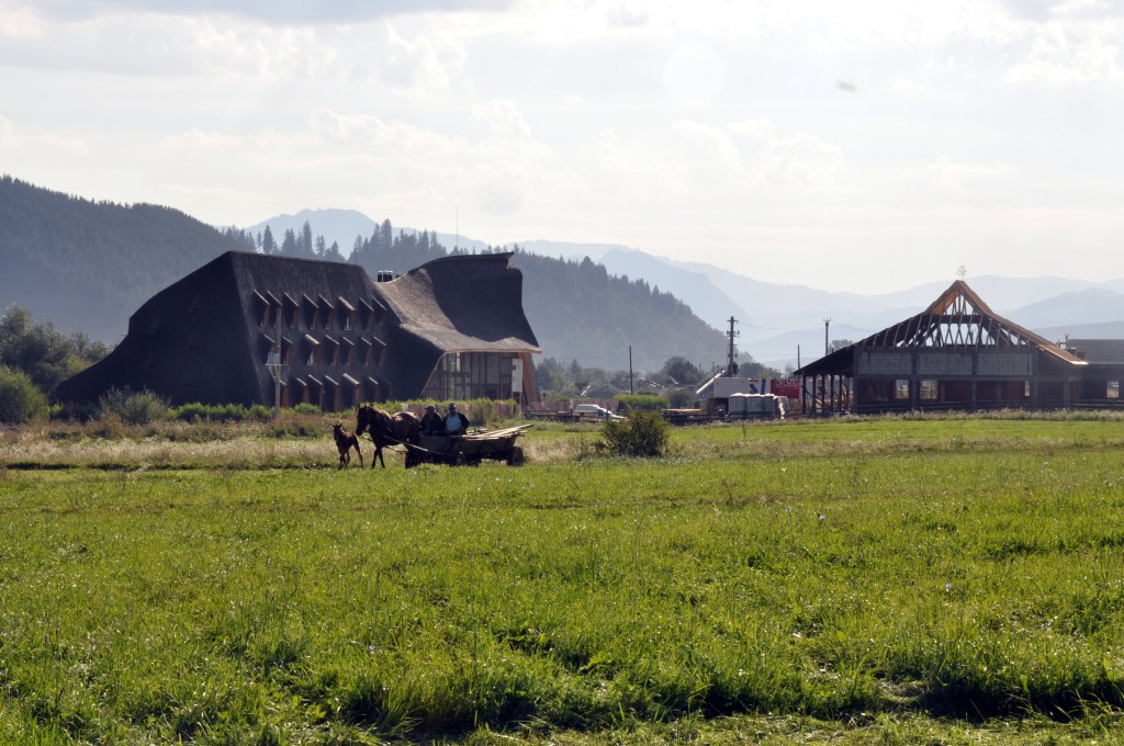Během dopoledne jsme obkroužili horský masiv národního parku Piatra Craiului a kolem jedné hodiny dorazili do turistické oblasti cabany Plaiul Foii, na kterou vedly směrovky už od Zarnesti a i v mapách byla uváděna jako hlavní turistické místo ve zdejším podhůří. Na místě se nacházel menší kemp a kolem několik budov – nově postavených, či zrekonstruovaných penzionů. Samotná cabana Plaiul Foii byl asi třípatrový, nikterak zajímavý hotel „Harrachovského typu“. Turistů zde bylo poskrovnu, žádný nátřask, což nám samozřejmě vyhovovalo. Zdálo se, že veškeré turistické osazenstvo je složeno výhradně z Rumunů, kteří si do horského kempu, či penzionu zajeli užít poslední zbytky léta. Žádného cestovatele na těžko jsme prozatím nepotkali. Na druhé straně této osady jsme našli další vyřezávaný kříž, místo pro obědovou pauzu jako stvořené. Na tomto místě jsme se rozhodovali, kudy jít dál. Jedna varianta byla pokračovat na jih a vyšplhat se do sedla, do kterého bychom pravděpodobně spadli, kdybychom se masiv národního parku Piatra Craiului rozhodli přelézt. Další variantou bylo pokračovat po cestě na severozápad, kam ostatně i směrovky „na Fagaraš“ v tomto místě ukazovaly. Vzhledem k tomu, že jsme stále ještě nebyli na turistické mapě Fagaraše a šli pouze podle satelitního pohledu vytisknutého z Google map :-), rozhodli jsme se věřit místním ukazatelům a pokračovat severozápadním směrem.