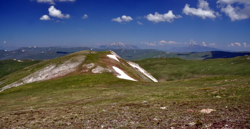 Bezmračné ráno slibovalo další horký den. Naposledy jsme využili komfort čerstvé vody potoka a vyrazili na cestu. Během dopoledne jsme vystoupali na protější masiv Venec a přes vrchol Rasanguljt (2383 m.) jsme se dostali až na samý okraj té opravdové Šar-“Planiny“. Na mapě to jako planina moc nevypadalo, ale to jsme si už zvykli – mapa, kterou jsme měli, nepatřila k nejpřesnějším. Jak jsme pak zpětně zjistili, bylo to hraniční místo mezi Makedonií a Kosovem – celá planina už patřila Kosovu. To na naší mapě samozřejmě nebylo, ta byla z let, kdy samostatné Kosovo ještě nebylo.